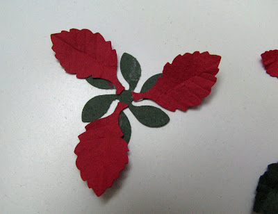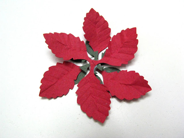 Долго смотрела в сети на "цветочки" пуансетии, изготавливаемые всевозможными способами. Все они больше похожи на красные ромашки. И тут до меня дошло, почему они настолько недостоверны. Меня поймут ботаники и любительницы цветоводства - пуансетия не цветок! То, что большинство людей принимает за лепестки, на самом деле прицветники, т.е. почти что листья. Пуансетия не цветок, а ветка с красными листьями. А "тычинки" - собственно малюсенькие цветочки. Яркие листья не расположены по кругу в один этаж, а нанизаны на стебель по спирали с некоторым расстоянием, что делает "цветок" рыхлым. Как и положено, молодые листочки на конце побега более мелкие. Поэтому правильнее делать пуансетию из дырокольных листочков, а не цветочков. Итак, нам понадобятся дыроколы или вырубка в форме листочка 2х размеров. Зеленые листья (2-3шт) и красные (6 больших и 3 маленьких) по сути одинаковые и различаются только цветом. Можно взять еще любой по форме чашелистик, или вообще обойтись кружочком зеленого цвета (даже вручную можно вырезать, потому что его все равно не будет видно). Листикам придала форму (см. МК Делаем листики сами)